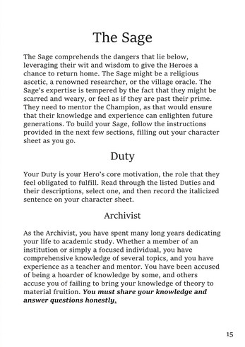 You, the players, each take the role of one of the Heroes. One of you will play the Champion, the aspiring legend with a penchant for action, and the other will play the Sage, the experienced leader with the wisdom needed to survive the challenges before you. Your roles differ, but your duties are the same: you must come together to triumph over the enemies and obstacles that lie beneath the realm of the living. As you journey, you will prepare yourselves for your inevitable confrontation with your Foe, the ruler of the Underworld. Can you cut a path through the depths and uncover the Underworld’s secrets? Or will you find yourselves overcome with doubts in each other? Can you complete your quest to save your home? And when all is done, will you survive to escape the Underworld's grasp?
